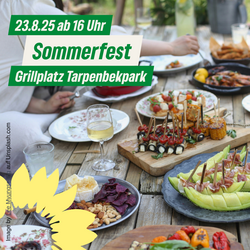 Für den 28.06. hatten wir alle Grünen und Interessierte zu unserem Sommerfest in den Tarpenbek eingeladen, jeder hatte eine Kleinigkeit dabei und Christian hatte einen Grill organisiert, den man bei der Stadt Norderstedt ausleihen kann. Den ganzen Abend haben wir bei herrlichstem Wetter zusammen geschnackt, gegrillt und gelacht. Danke an alle die dabei waren, das hat richtig Spaß gemacht und machen wir sicher 2025 noch einmal.