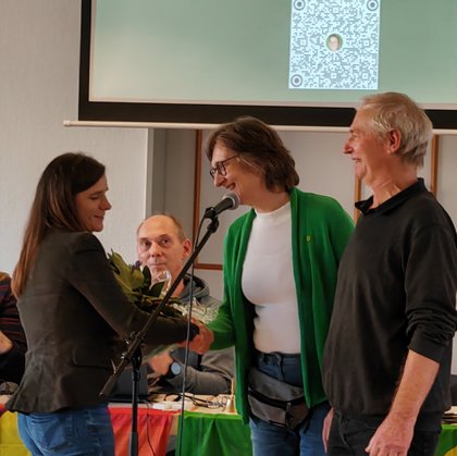 Am 30.11.2024 fand die Aufstellungsversammlung für unseren Wahlkreis statt. Sechs Kandidierende haben sich den zahlreich erschienenen Mitgliedern vorgestellt und anschließend Fragen aus dem Publikum beantwortet. Aus Norderstedt waren Margrit und Daniel angetreten. Damit waren wir der Wahlkreis mit den meisten Kandidierenden, was mit Blumen von der stellvertretenden Landesvorsitzenden Denise Kreissl gewürdigt wurde.